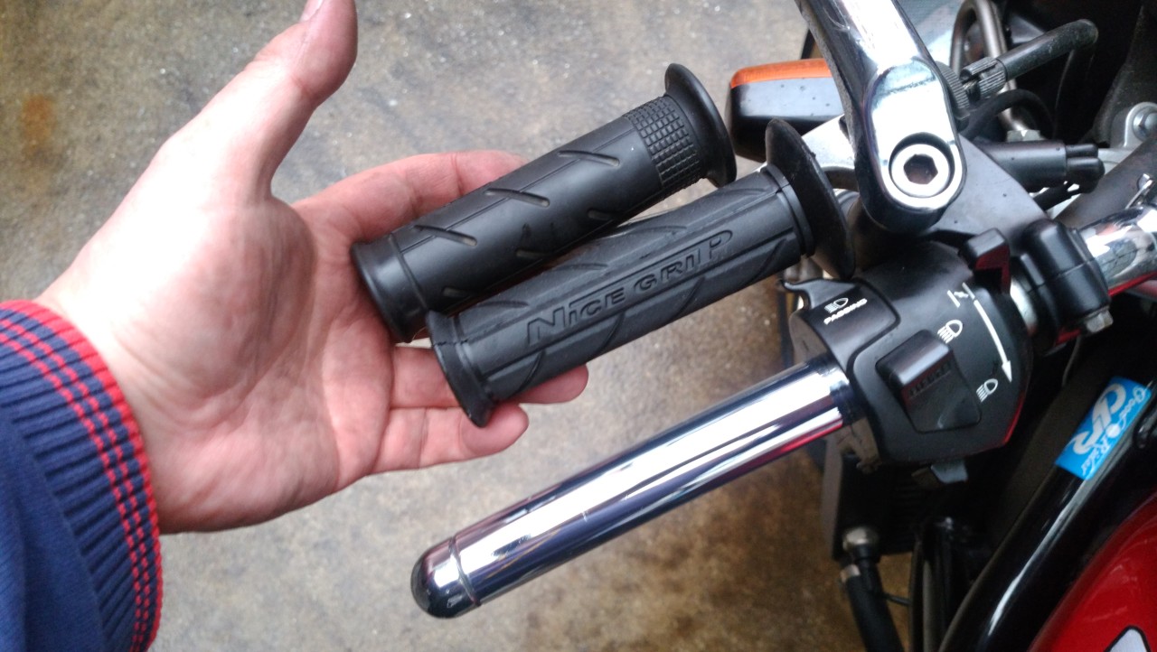 長男号のグリップ、転倒して削れたままだったので交換しようと部品調達していた。