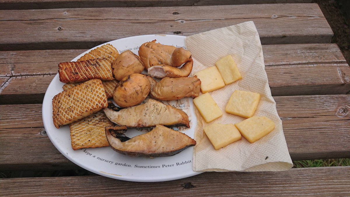 今回は、一気にBBQ焼いても食べる人が一人なので辛いから燻製メイン。