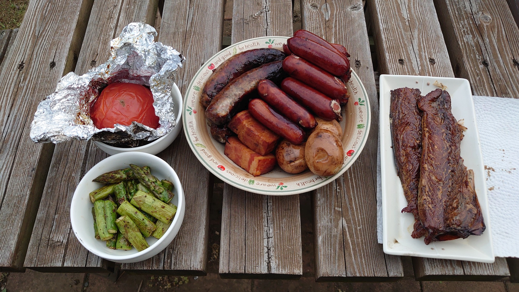 あとはいつものソーセージ/厚切りベーコンと、BBQで好評だった業務スーパーの「こだわり生フランク(ハーブ入り)」と下ごしらえした鯖を用意。