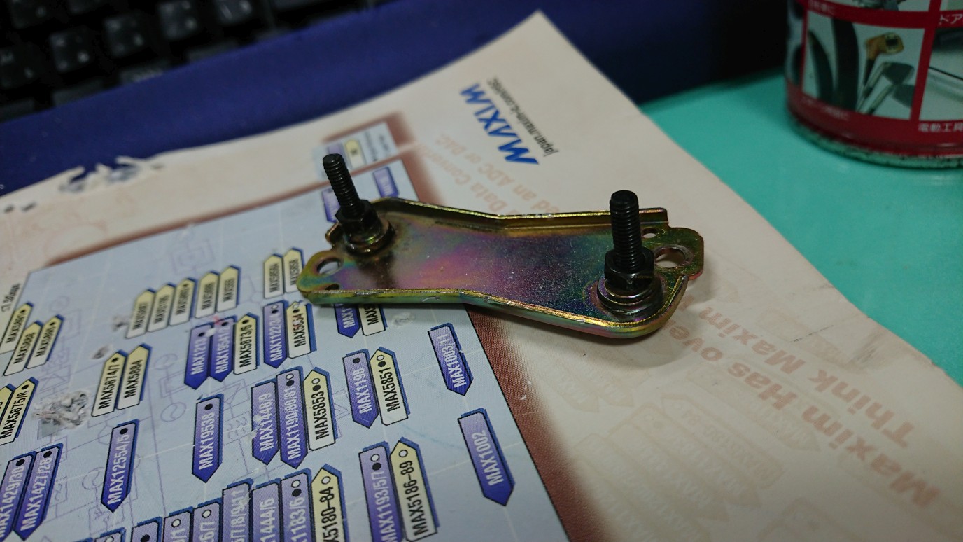 もげたボルト付きポップナットをハンドグラインダでぶった切って裏からM3ドリルで揉んで、タップを立てて長さの合うM4ネジを突っ込み、裏はナットでダブルナット。