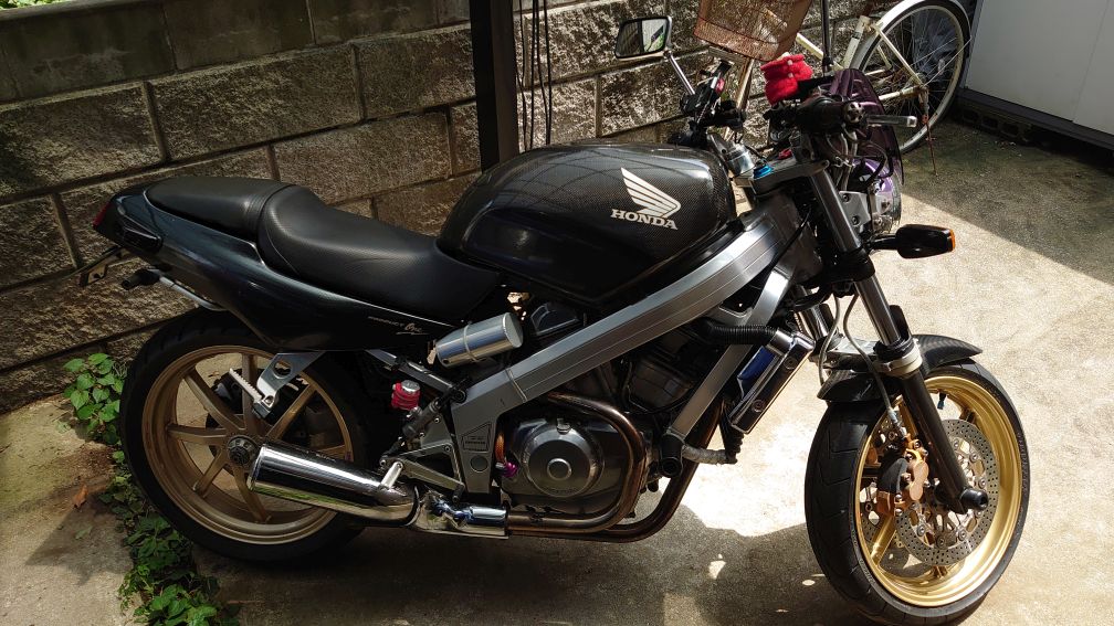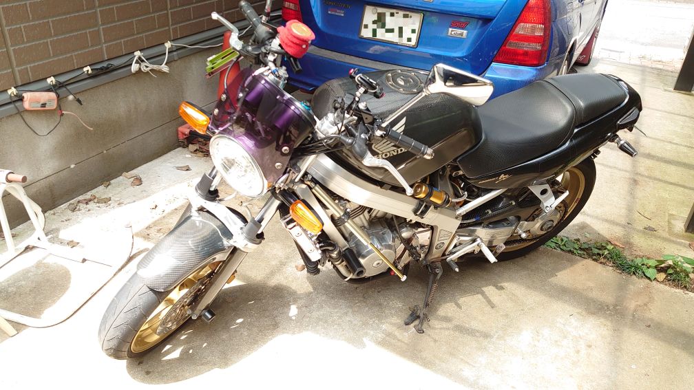 夕方は雨らしいので、ミラーとマフラーをいつものに戻してお片付け。