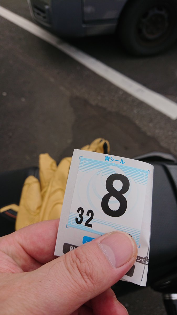 窓口のおっちゃん、話しかけてたもんで間違えてナンバー貼り付け用のシールを破棄して窓ガラス用の方をよこしたw