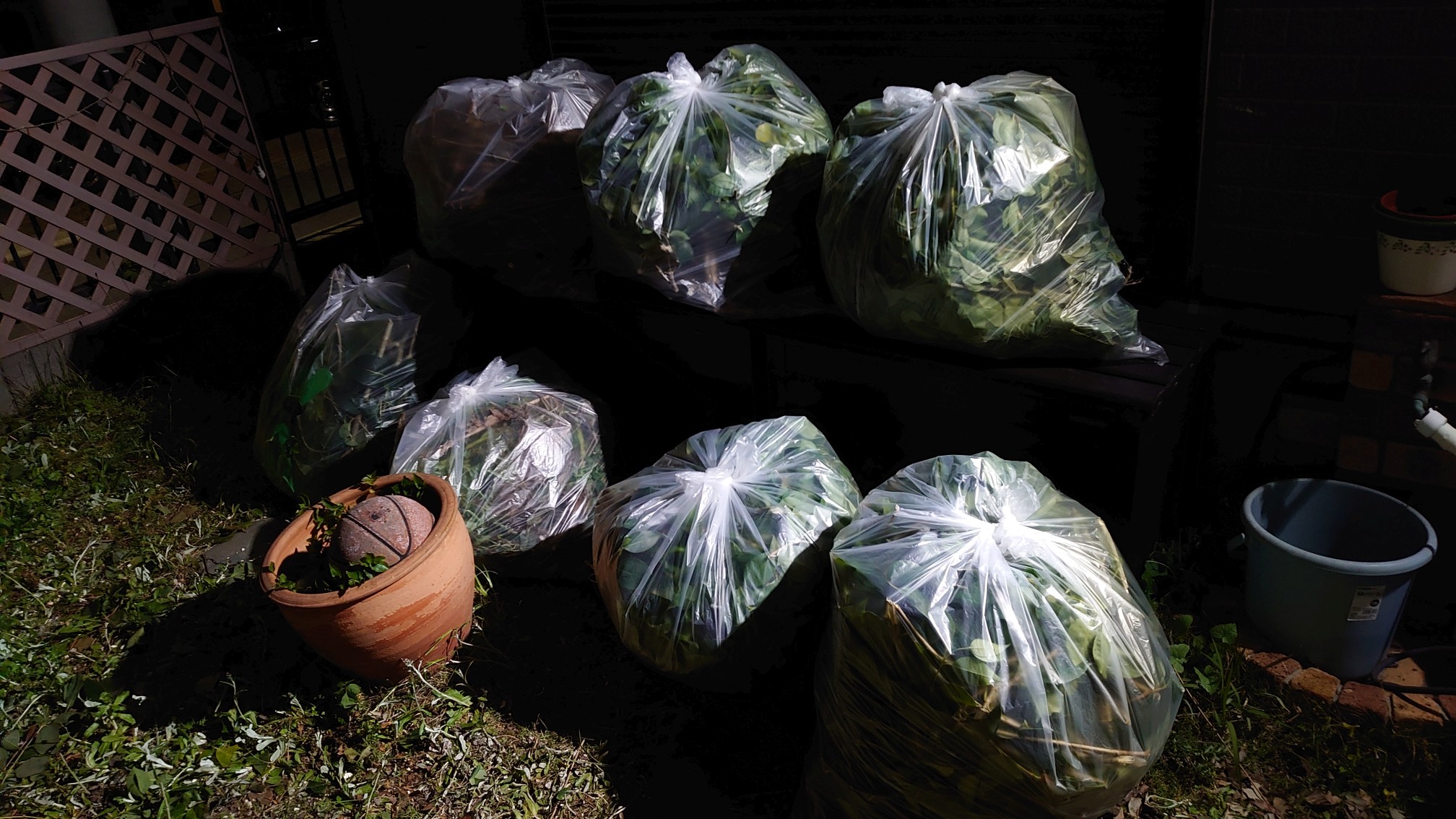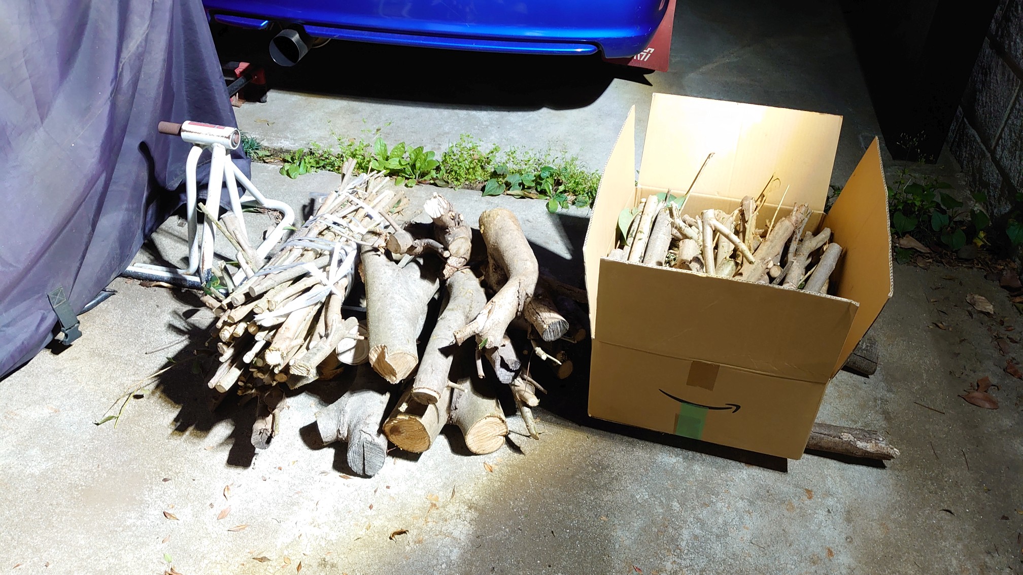 長男氏も帰ってこないので、一人作業だと枝の落下防止とか段取りを慎重にしないと手間が倍増する。