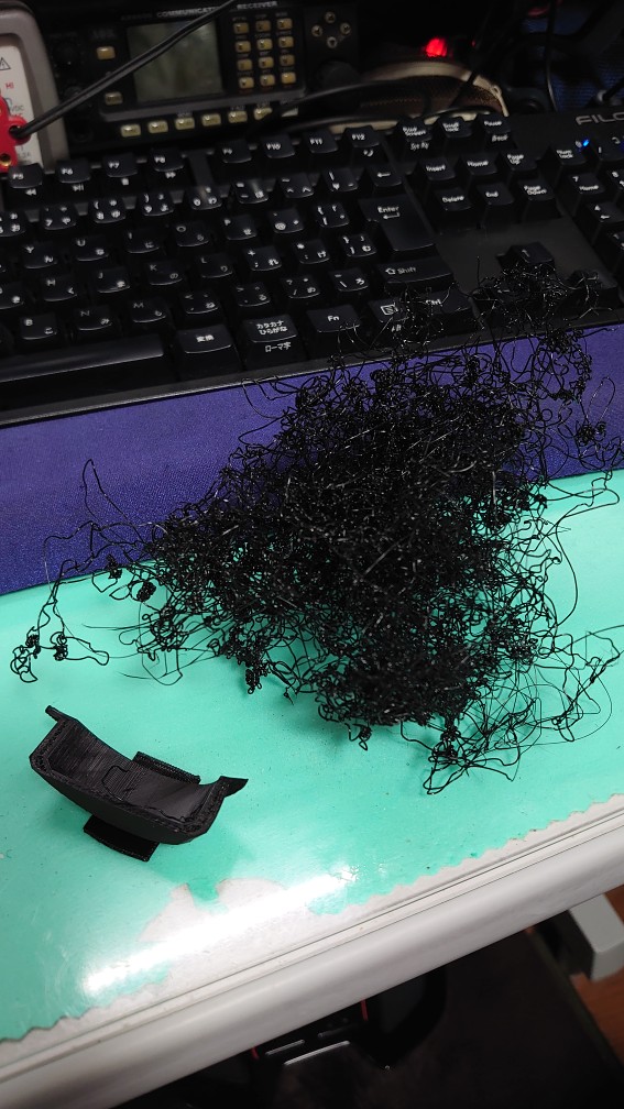 こっちは時間が掛かるから放置してた3Dプリンタでベースの吸着が弱くて途中で外れて、後は2時間ぐらいひたすら射出され続けたモジャモジャ!