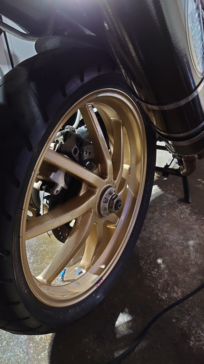 MC28ホイルの当たりを削って調整する現物合わせで久しぶりにリアホイル外した。