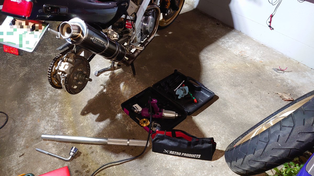 なお、久しぶりすぎてセンターロックナットが固く、安物ACインパクトレンチじゃ歯が立たん。