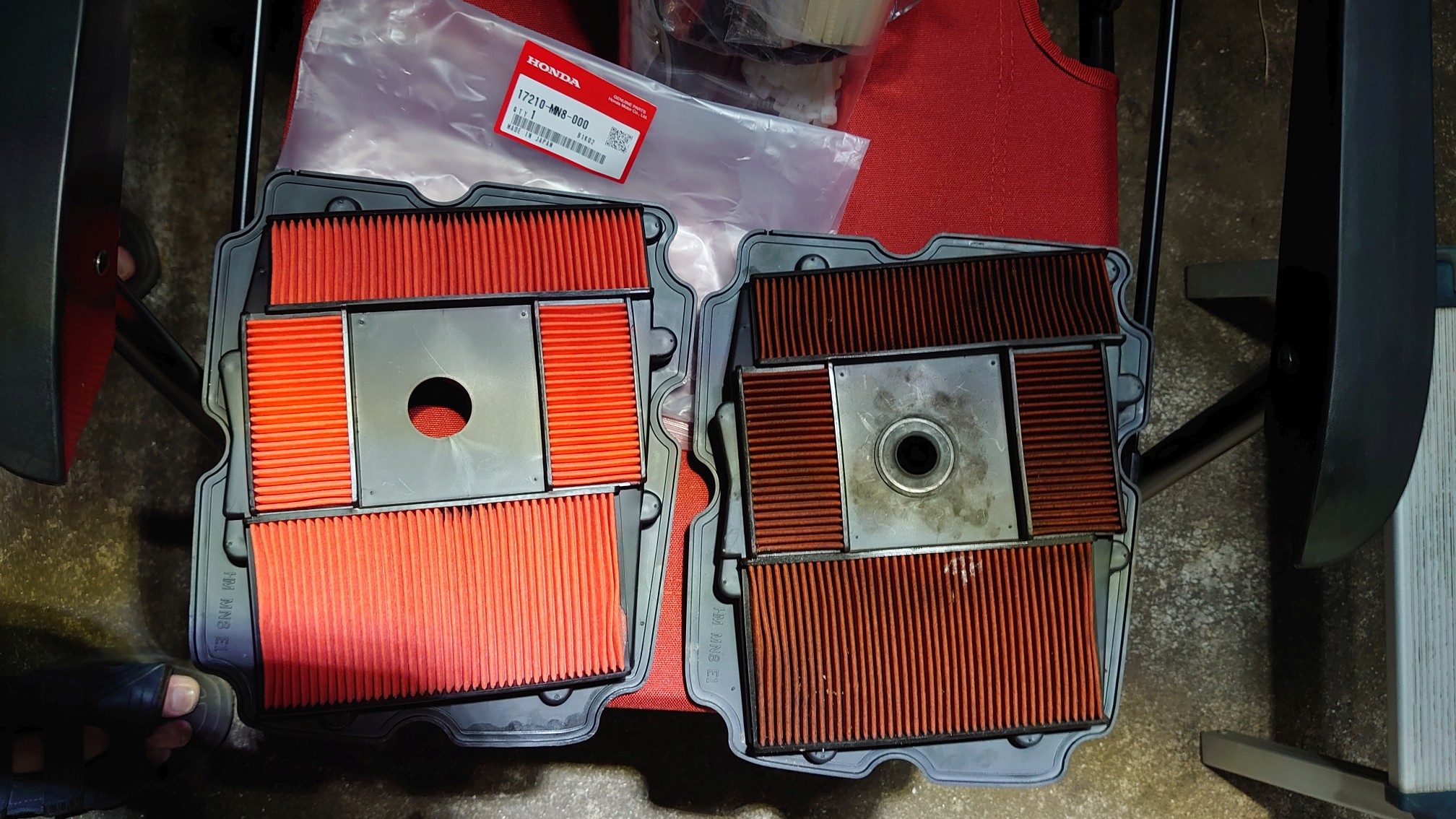 覚悟決めてタンクを外したので、ついでにエアクリの確認。